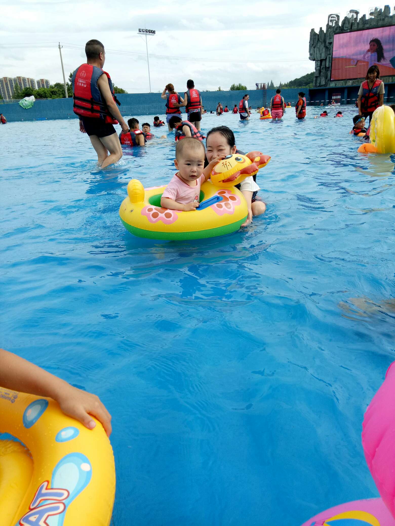 第一次带宝宝去水上乐园玩,很开心,一点多去居然玩到了晚上六点多,大家还都舍不得走,儿童戏水池里的水感觉稍微有点浅,一岁多的宝宝坐在游泳圈里,脚还能落地,坐那个滑滑梯下来,因为水浅,把屁股都磨破皮了,在下面的瓷砖上磨的😓。海啸可好玩了,太刺激了。还有海浪🌊、高空巨蟒、高空速滑等项目都好玩呢。安全措施也很好,都有工作人员在指挥,不穿救生衣的话,是绝对不给进的,虽然当时觉得不近人情,但是细想也是为我们着想,所以大家都配合了工作人员。有空还会再去的